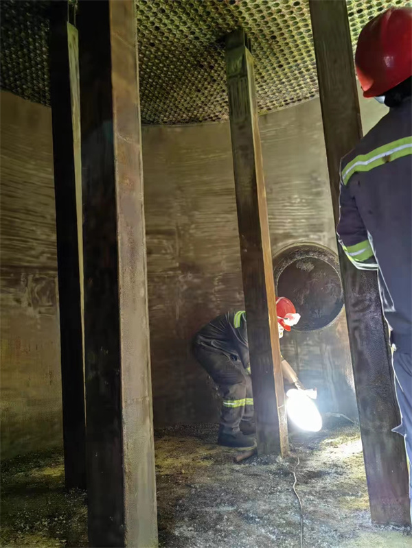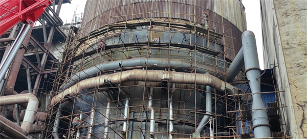 銅冠冶化(銅陵)公司2022年度硫酸車間一、二期轉(zhuǎn)化換熱器、預(yù)熱器、焙燒爐冷盤管、焙燒爐殼體檢修項(xiàng)目火熱施工中